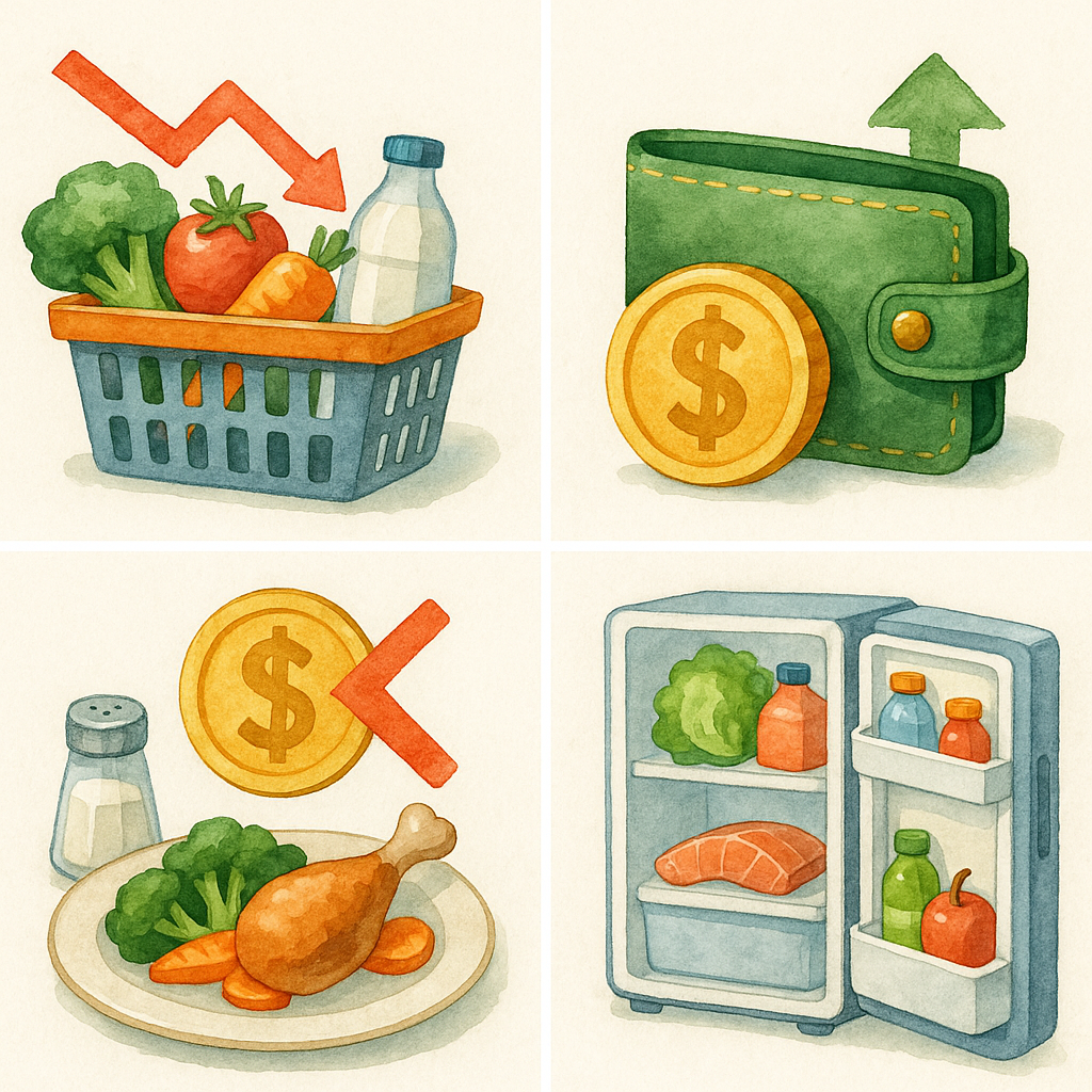 - 대체재 선택: 동일 영양소를 가진 저가 식재료를 찾아 활용(예: 소고기 대신 닭고기·두부).